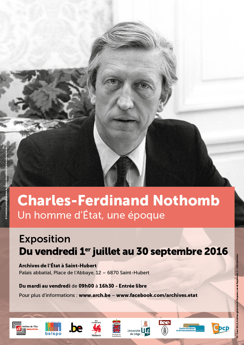 Van 1 juli tot 28 oktober 2016 (verlengde openingsduur!) organiseert het Rijksarchief te Saint-Hubert samen met de archief- en documentatiedienst van het Centre Permanent pour la Citoyenneté et la Participation (CPCP) de tentoonstelling Charles-Ferdinand Nothomb, un homme d’État, une époque.
